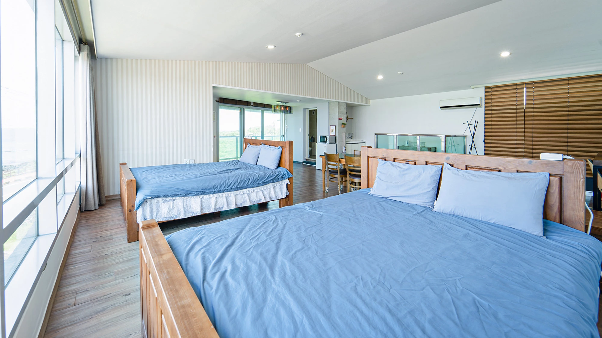 - 집기품목 : TV, 냉장고, 전자레인지, 타월, 드라이기, 샴푸, 린스, 바디워시, 치약, 비누, 취사시설/도구, 인덕션, 와이파이, 금연, 가족실, 세면도구, 화장대, 무선인터넷, 소화기, 에어컨, 트윈베드, 화재 감지기, 테라스, 욕실용품, 바다전망